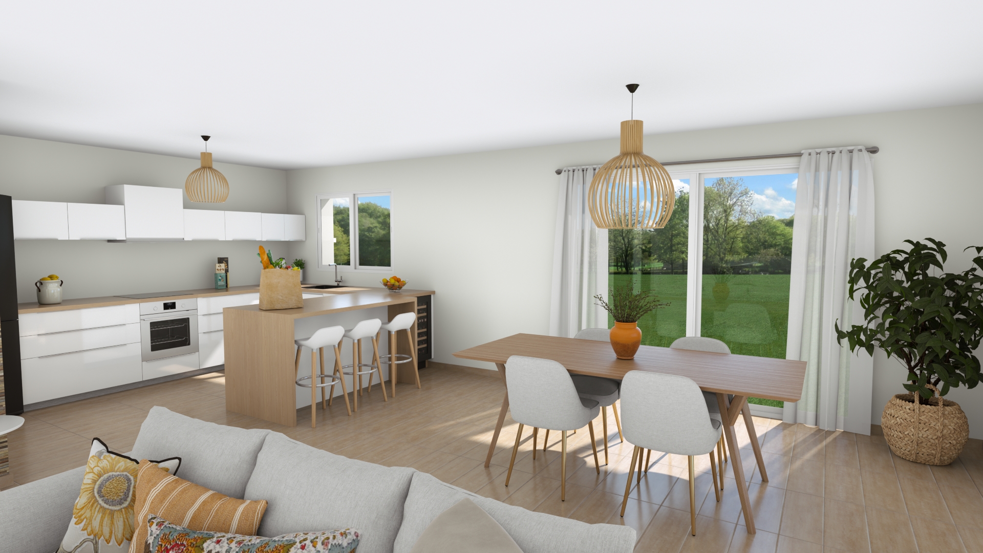 Photos non contractuelles, sous réserve de disponibilité de notre partenaire foncier. Maison livrée prête à décorer (peintures, façades placards, sol des chambres non compris). Projet Hors VRD et Hors Adaptation au sol. Hors frais de notaire.